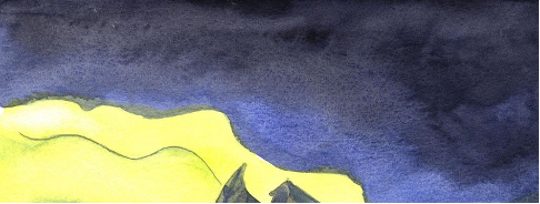 在這幅圖作中,我看到當時天色昏暗,天空除了一片藍黑色,甚麼東西都沒有。