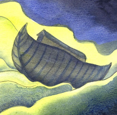 在畫的中間,我看見一艘方舟在海中漂浮。明顯地,這是一幅關於挪亞方舟的圖畫。自從人類始祖犯罪開始,人愈發過著偏離神,以自己為中心的生活。直到挪亞的時代,經文這樣形容當時的人們:「罪惡很大,終日所思想的盡都是惡」。這表示當時的人已經「壞到貼地」。他們可能會想盡辦法去滿足自己的慾望,不顧念別人的需要。他們又會用盡剝削和欺壓他人的手段,甚至覺得這是一件自然不過和合理的事。