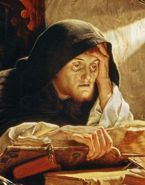 但在這刻的馬丁路德,卻是瑟縮在修院的另一間房間裡,翻開一本厚厚的拉丁文聖經,仔細閱讀經文。