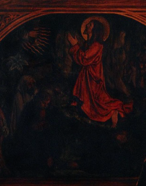 這個畫面和桌子下畫了耶穌在客西馬尼園祈禱的樣子互相輝映,畫家彷彿在說明,馬丁路德並不孤單,因為耶穌都曾面對過極大的屬靈掙扎,而主耶穌就是在禱告中得著力量,勝過那惡者的攻擊,於是毅然踏上苦路!所以耶穌很明白馬丁路德所面對的信仰疑惑,亦會幫助馬丁路德得著力量面對。