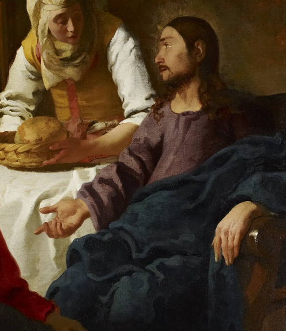 弟兄姊妹,今日我們所觀賞的是由十七世紀荷蘭畫家維梅爾的畫作《基督在馬大和馬利亞的家中》(Christ in the House of Martha and Mary)。