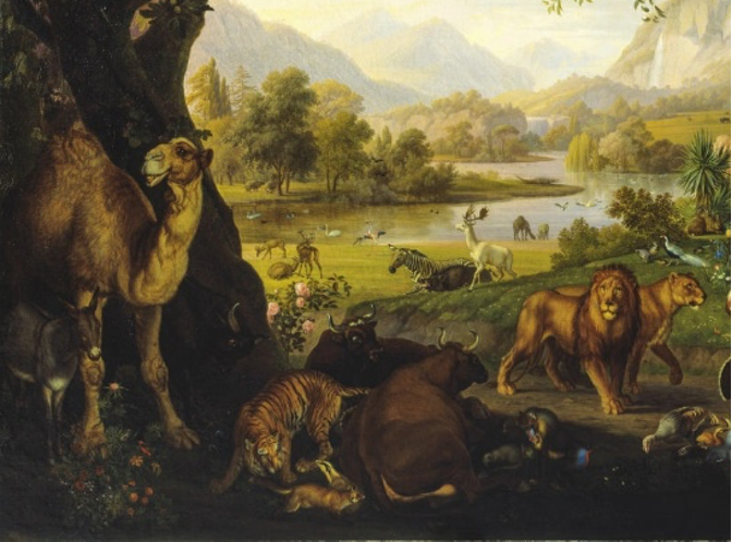 弟兄姊妹,今日我們會觀賞十八世紀捷克畫家Johann Wenzel Peter所畫的《亞當和夏娃在地上的樂園》。這位畫家素來出名描繪各式各類不同的動物。