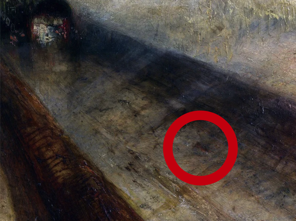 畫家刻意在火車軌前方畫上一隻不太顯眼,卻正在奔馳的兔子。究竟牠會否跑得比火車快?還是有一宗鐵路意外將會發生?畫家留下一個懸念給觀畫者猜想。