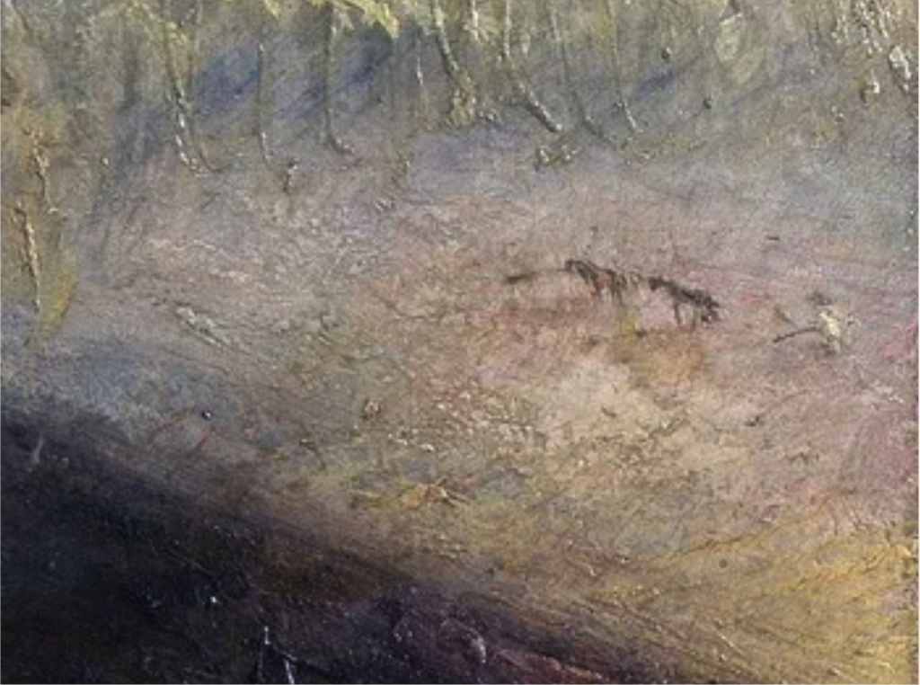 不過,看著右邊渺小的農夫,正帶著兩頭牛,用傳統的方式,緩慢地耙地。與當時全新的蒸汽火車對比起來,盡顯人類科技的發展對傳統農業社會所帶來的衝擊。